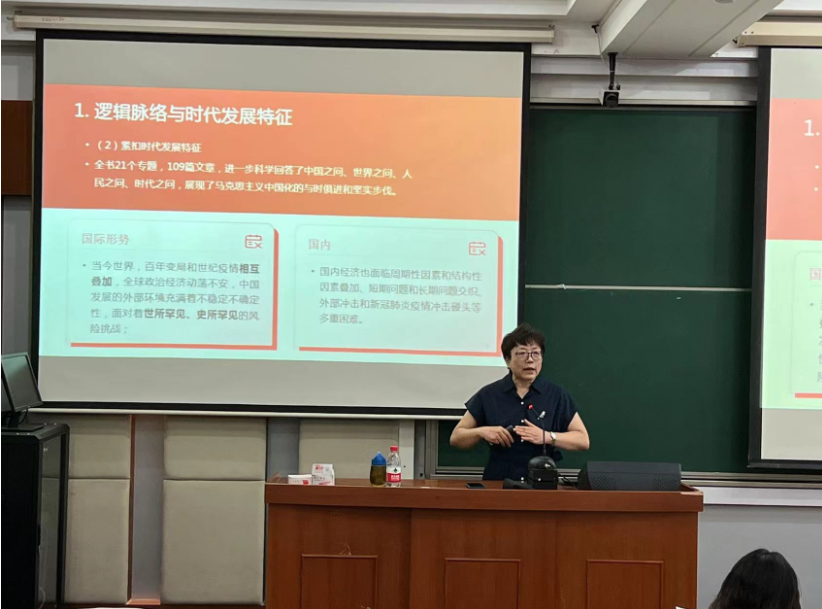 10月5日下午,马克思主义学院李晋玲受邀在工商管理学院作了《习近平谈治国理政》第四卷专题辅导报告。讲座由学院党委书记陈娟主持,全院教职工聆听了讲座。
