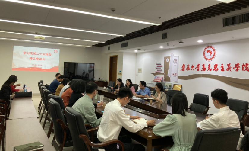 10月19日下午,马克思主义学院召开学习党的二十大报告师生座谈会。全体院领导、教工党支部书记、副书记和师生代表就收听收看党的二十大开幕会以及学习党的二十大报告心得体会做交流发言,会议由学院党委书记王娟主持。