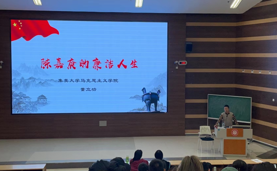 10月21日下午,外国语学院举办了以“陈嘉庚的廉洁人生”为主题的新生入学教育讲座。特邀马克思主义学院董立功老师主讲,院团委书记姜如星主持,学院2022级全体新生参加。