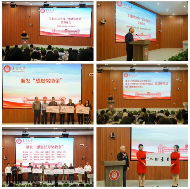 颁筹会上,周邵生向大会作2022年度“感恩奖助金”募筹情况汇报,他倡导与会师生要心怀感恩,用实践行动投身学院的发展建设。随后,举行“感恩助困金”和“感恩长寿奖教金”颁发仪式,并为退休教师颁发“感恩礼物”。财经校友会轮值会长林福民宣读2023年度“感恩奖助金”募筹通告,号召广大校友积极响应与参与,让项目做出温度、做出情怀,做出实效。