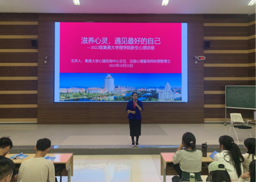 10月23日上午,理学院在建发202举办主题为“滋养心灵,遇见最好的自己”的心理讲座。讲座由集美大学心理咨询中心主任、注册心理督导师林赞歌博士主讲,理学院22级辅导员和全体新生参加。