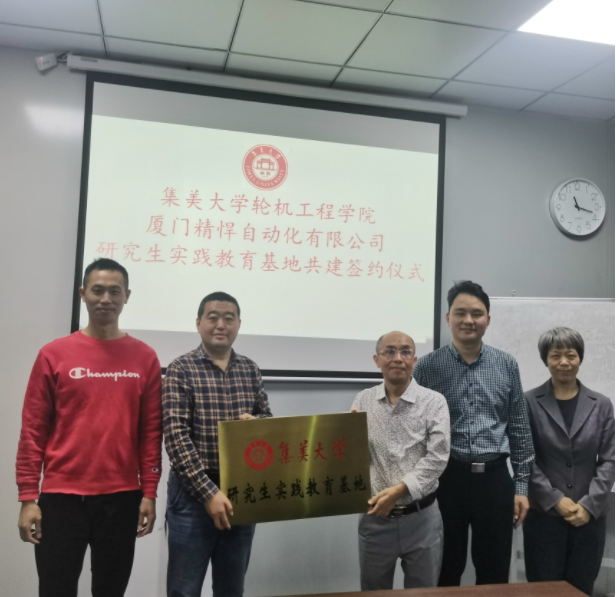 为强化产教融合育人机制,推动行业单位全方位参与研究生培养工作,10月26日,轮机工程学院党委副书记赖龙荣、副院长戴乐阳一行赴校友企业厦门精悍自动化有限公司参加共建研究生实践教育基地签约及授牌仪式。公司总经理、轮机96级校友王九龙参加仪式。