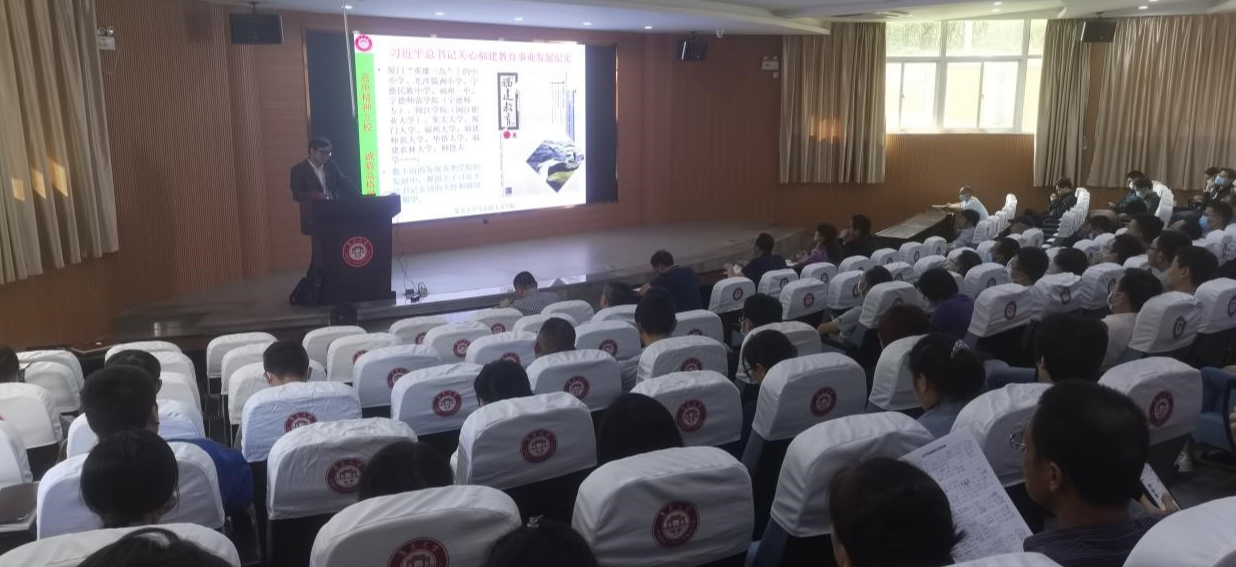 梅进禄提炼了《闽山闽水物华新——习近平在福建足迹》《习近平在厦门》《习近平在宁德》《习近平在福州》等书的有关章节,结合自己调研收集的材料,通过“始终如一的关怀”“形式多样的关心”“饱含真情的期望”三个方面,讲述了“习近平总书记在福建工作期间,无论在那个岗位,都始终关注教育问题,都在不断促进教育事业的发展”的一个个生动感人的故事。讲座材料详实,图文并茂,深入浅出,让在场教职工真切感受到习近平总书记对教育事业深切的关怀和殷切的期望,进一步深刻领悟了习近平总书记关于教育的重要论述。最后,黄海宏结合讲座内容,传达了学校2022年度科研工作推进会精神,要求全体教职工深入贯彻落实习近平总书记对集美大学百年校庆贺信精神和系列重要指示精神,为建设一流大学发挥科研排头兵的作用,为建设教育强国、办好人民满意的教育作出应有的贡献。