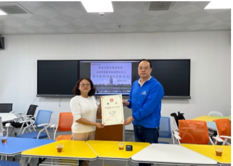 活动伊始,张海燕对吴教授的到来表示热烈的欢迎。吴教授表示来到集美大学倍感亲切,此次应邀担任日语学科讲座教授,更是深刻感受到了学院领导的重视和信任。希望能运用自己的科研经验,和日语系的老师们一起共同努力,共创佳绩。随后,日语系主任黄燕青、副主任任江辉以及青年博士代表、教师代表也作了简单发言。仪式最后,张海燕给吴教授颁发了聘任证书。