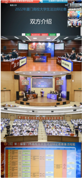 10月29日至 11月20日,第二届厦门市高校大学生法治辩论赛决赛在集美大学举办。本届辩论赛邀请了厦门大学、华侨大学、集美大学、厦门医学院、集美大学诚毅学院、厦门软件职业技术学院共6所高校队伍参与,经过初赛、半决赛、决赛9场比赛的精彩比拼,集美大学代表队与华侨大学代表队迎来巅峰之战,经过激烈角逐,最终反方华侨大学获得冠军,正方集美大学获得亚军,厦门大学与厦门医学院获得季军,集美大学诚毅学院与厦门软件学院获得优秀奖。此次大赛还评选出了1名最佳辩手、9名优秀辩手。