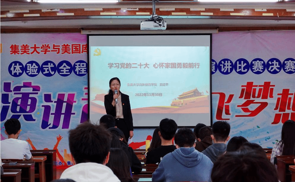 近日,海外教育学院在学院三楼多功能厅组织团学干部、学生党员和入党积极分子集中学习党的二十大精神,由学院党委书记吴建平做“学习党的二十大,心怀家国勇毅前行”主题讲座。
