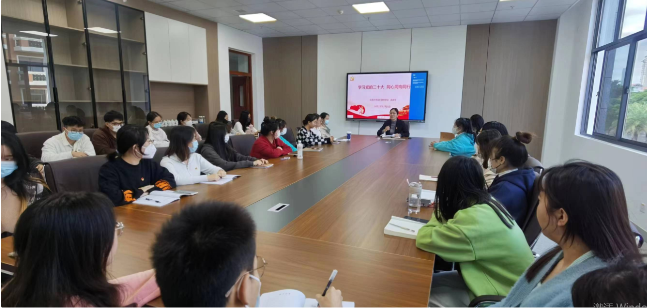 近日,海外教育学院组织学生党员在爱礼楼二楼会议室召开座谈会,由学院党委书记吴建平做“学习党的二十大,同心同向同行”主题发言,引导学生党员认真学习党的二十大精神。