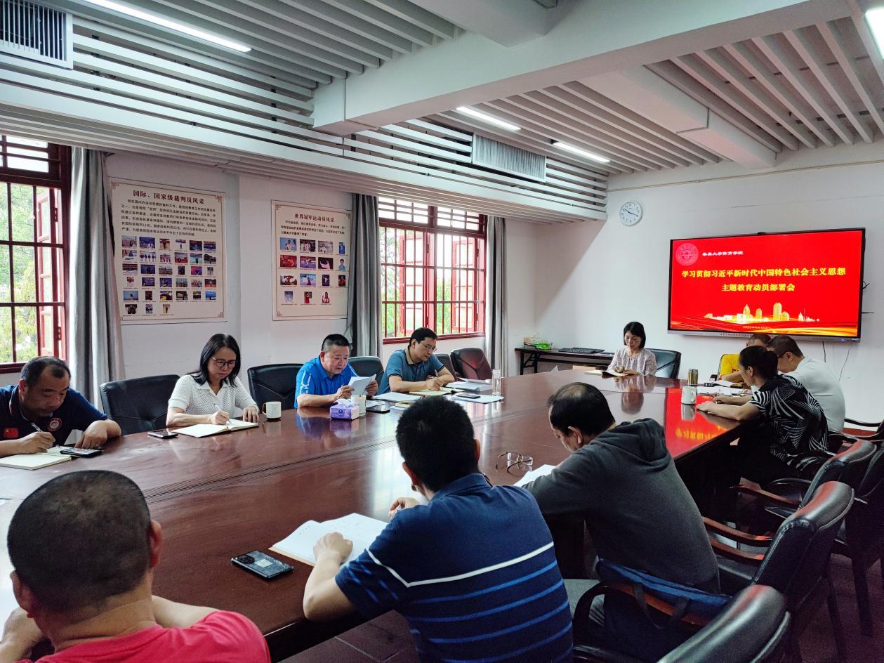 4月19日上午,体育学院召开学习贯彻习近平新时代中国特色社会主义思想主题教育动员部署会。会议由院党委书记邱邑亮主持,党委理论学习中心组成员参加会议。