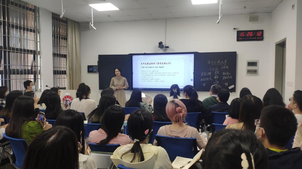 为进一步提升师范生教学技能,4月27日,厦门一中优秀青年教师韩莹应邀到海洋文化与法律学院以《答司马谏议书》为题进行片段教学示范与指导。学科教学(语文)硕士研究生、汉语言文学师范生及汉语言文学师范第二学位学生现场观摩。