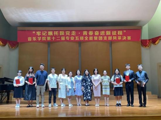 为深入开展“学习二十大、永远跟党走、奋进新征程”主题教育实践活动,近日,音乐学院举办“牢记嘱托跟党走·青春奋进新征程”第十二届专业五项全能暨团支部风采大赛。