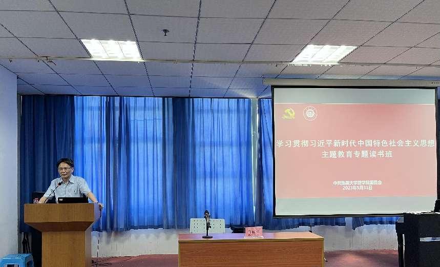 为推动学院学习贯彻习近平新时代中国特色社会主义思想主题教育走深走实,5月31日,理学院党委举办主题教育读书班辅导报告会暨全院教工大会,特邀马克思主义学院肖仕平教授做专题报告,院党委书记吴连星主持,全体党员、学院全体教职工聆听了报告会。