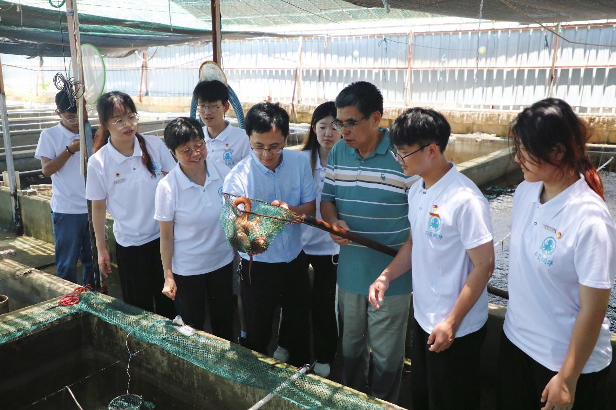 7月3日,水产学院“不负蛸华”实践队在王艺磊教授带领下考察黄屿坡中华蛸育苗场。