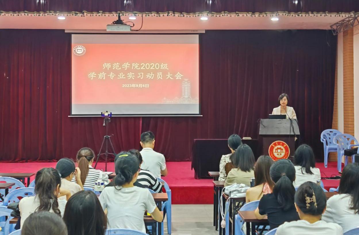 9月6日,师范学院于吕振万楼文汇阁和线上分别召开2024届学前教育专业、小学教育专业实习动员大会。院党委副书记张鸿、副院长谢书书、专业教研室主任、实习带队教师和2024届全体毕业生参加了实习动员大会。