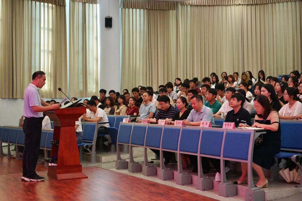 朱坤道为全体新生做题为《青春再启航,逐梦新时代》的辅导报告。报告从回顾军训瞬间切入,介绍了校史、校情,以大量详实的数据分析了学院强大的师资力量、丰硕的教学成果、雄厚的科研实力和一流的学风建设,就同学们关心的转专业、升学就业等问题答疑解惑,寄语新生要心怀梦想、培育诚毅品格、做到一专多能、树立底线思维。