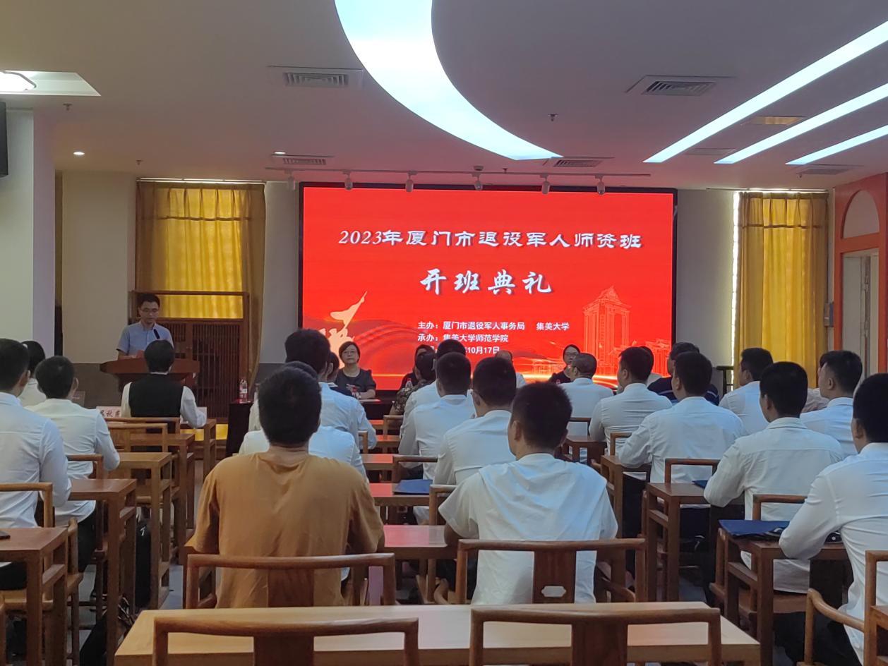 10月17日,师范学院于吕振万楼308举办2023年厦门市退役军人师资班开班典礼,市退役军人事务局副局长林虹、市退役军人事务局二级调研员陈静如、院领导班子及培训班全体成员参加,院党委副书记张鸿主持。