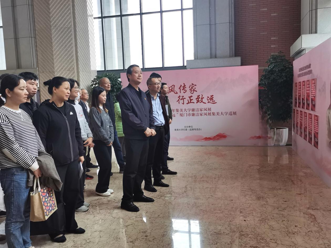 为弘扬清廉家风,传承嘉庚先生的廉洁思想,营造遵纪守法、崇廉尚实、风清气正的浓厚氛围,12月12日下午,后勤集团组织全体党员、在编职工参观由校纪委监委举办的“清风传家 行正致远”2023年集美大学廉洁家风展。大家认真观看了“习近平总书记关于注重家庭家教家风建设论述摘编”“嘉风嘉训”“清音出吾厝”“家书抵万金”“最美寻常处”五个篇章,还不时进行交流讨论,分享观展心得。