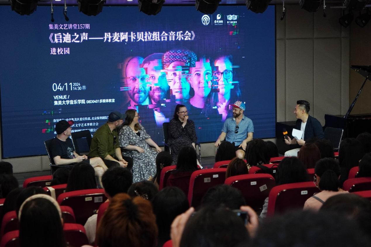 活动中,来自丹麦的“启迪之声”五位成员做了自我介绍,讲述了乐队的组建过程,分享了阿卡贝拉的起源与发展历史,并带领师生体验了阿卡贝拉的发声与配合,并演绎了经典曲目。院女生合唱团以一首悠扬的《牧歌》向嘉宾展示了中国民歌合唱的魅力。师生就阿卡贝拉的发声技巧和配合难点与嘉宾进行了交流。