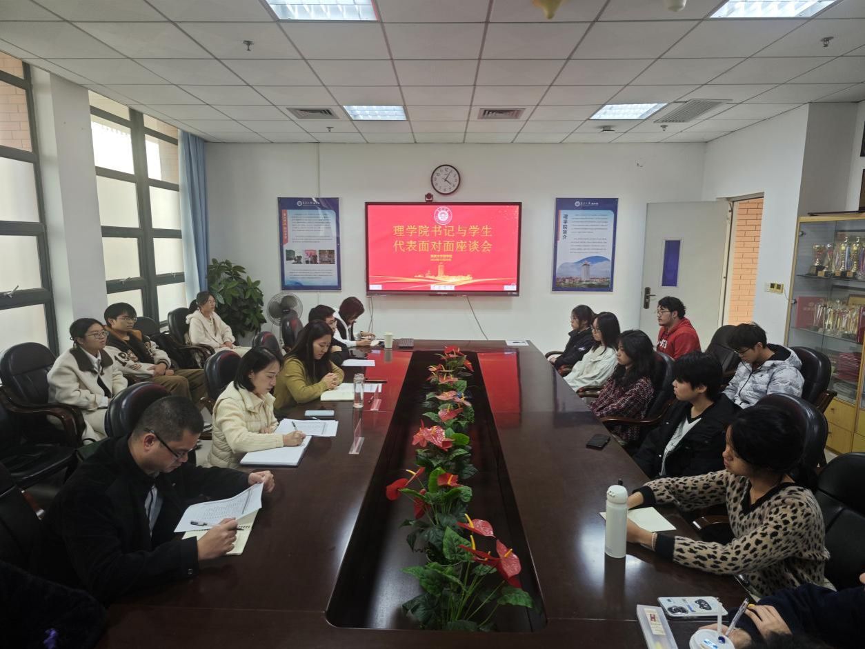 为倾听学生心声,加强师生交流,推进本科教育教学审核评估工作,12月25日下午,理学院在章辉楼552举办“深化交流,共促成长——书记与学生面对面”座谈会。学院党委书记黄煜、副书记裴园园、辅导员和学生代表参加。