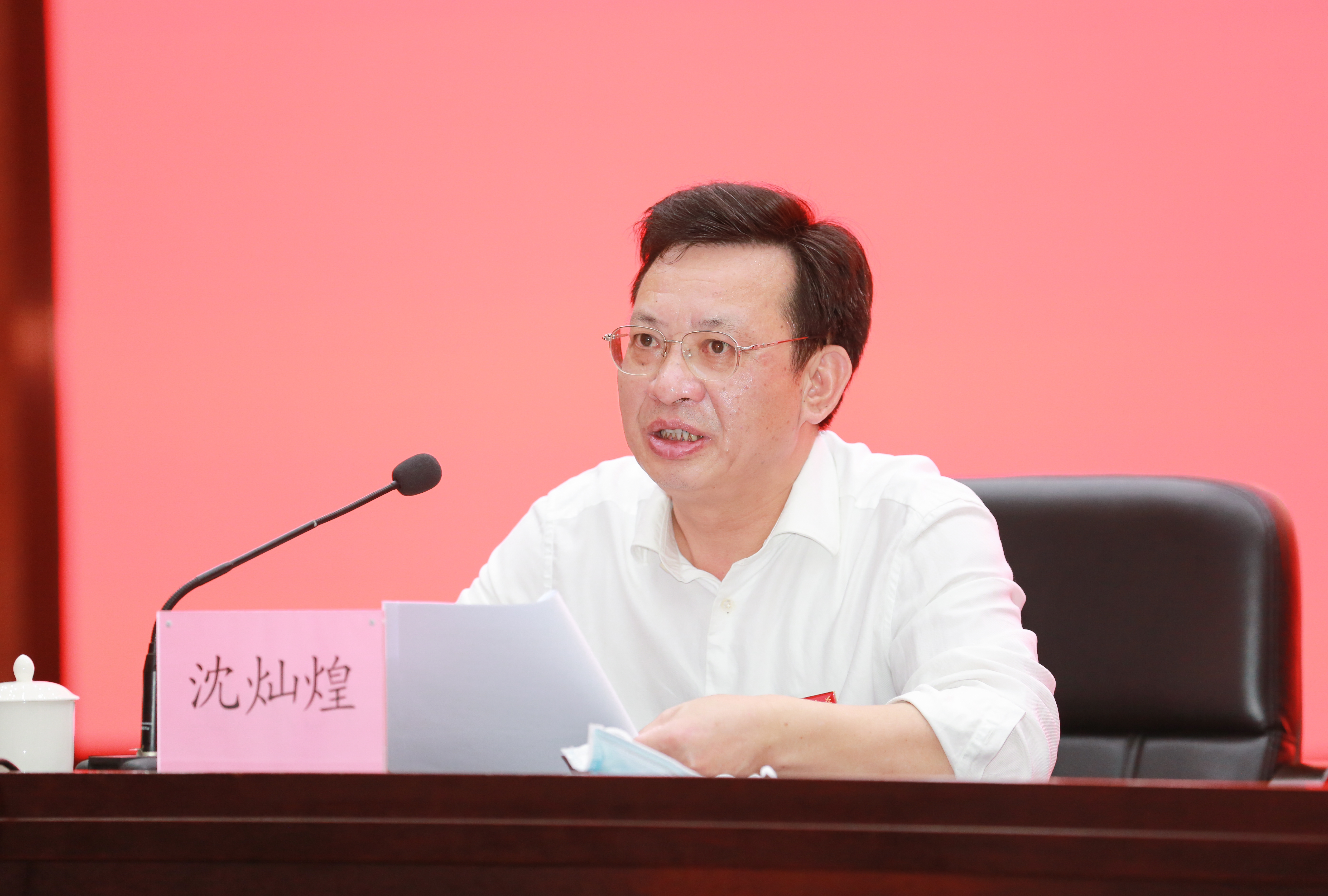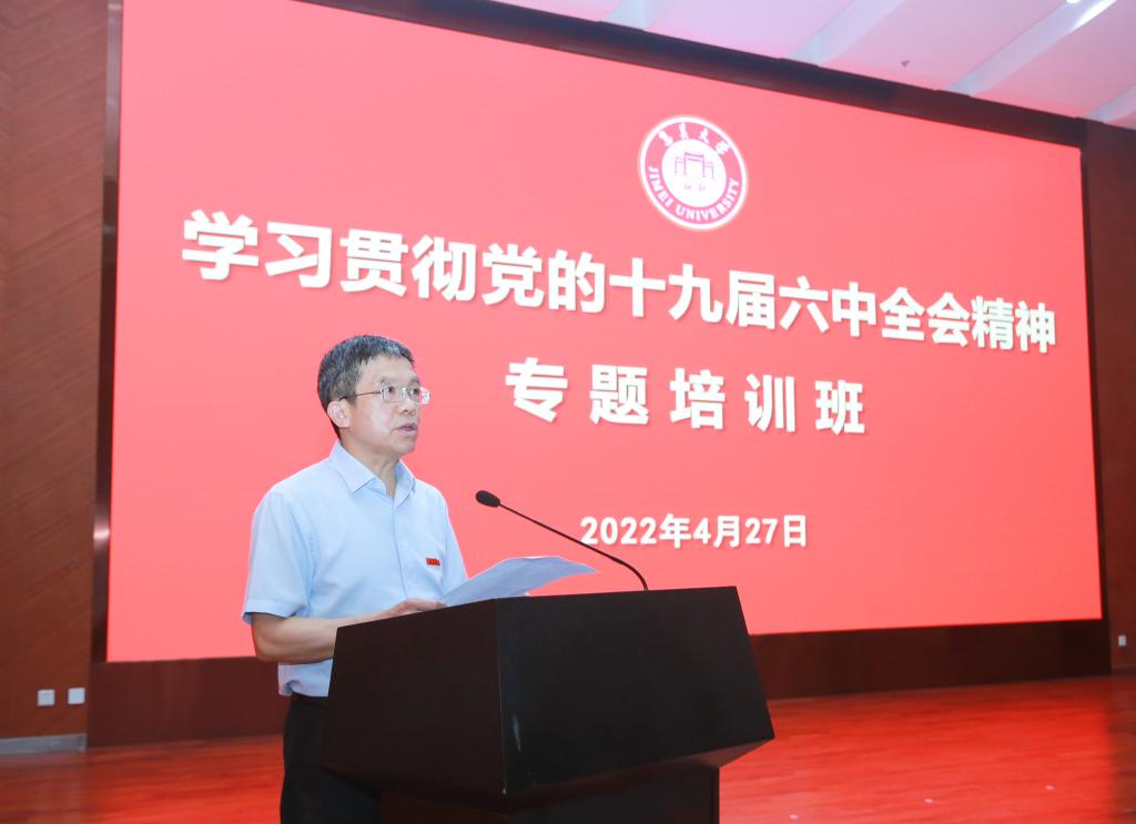 4月27日下午,我校举办学习贯彻党的十九届六中全会精神专题培训班开班式暨首场辅导报告,校党委书记沈灿煌作开班式讲话和专题辅导报告,校党委副书记、校长李清彪主持。