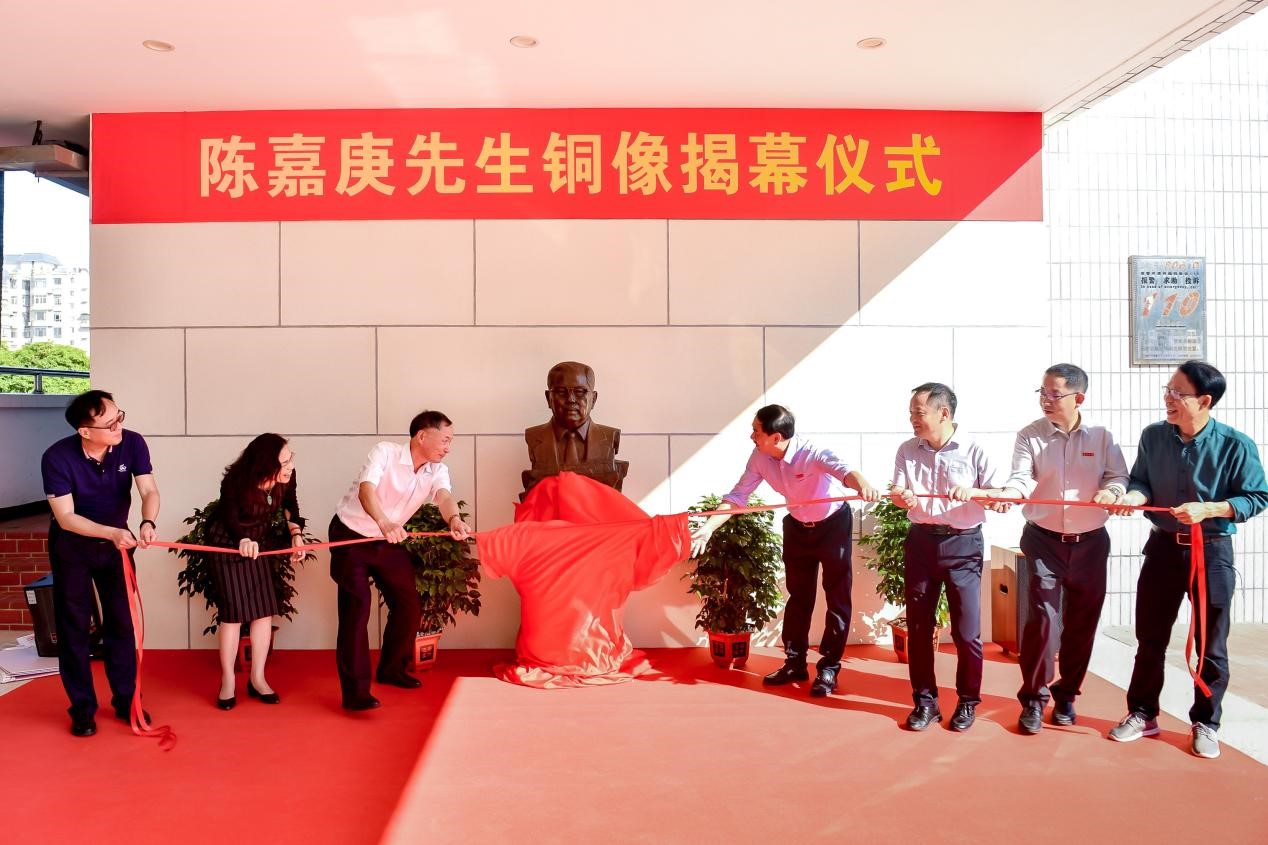 仪式上,郑志谦、陆元旦及在场嘉宾共同为陈嘉庚先生铜像揭幕。