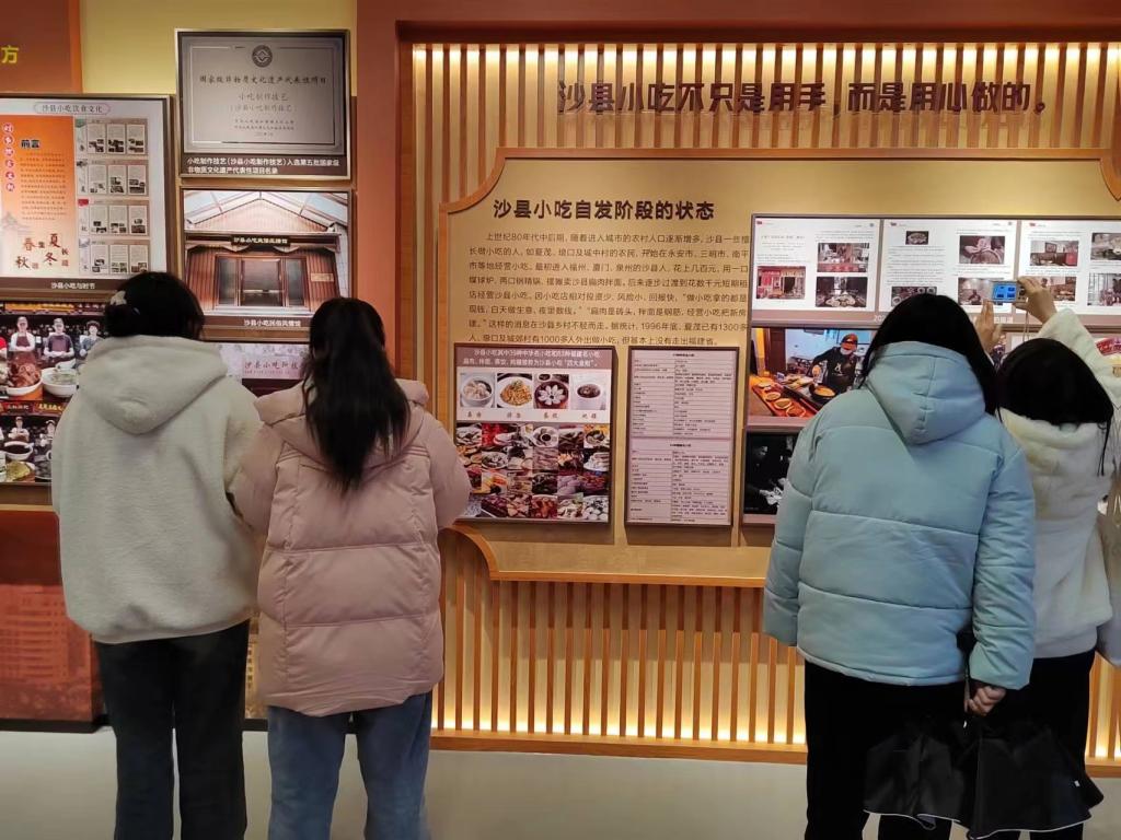 在探访“沙县小吃第一村”俞邦村的过程中,队员们参观了蕴含浓厚民俗文化的夏茂特色小吃民俗馆,了解小吃的制作技艺与风俗习惯,探寻传统小吃如何在新时代的发展下与时俱进。在极具地方特色的沙县小吃研学体验馆,队员们参观沙县小吃几十年的发展历程,领略小吃“标准化、连锁化、产业化、国际化、数字化”全面落实的转型升级之路,沉浸式感受沙县人民走出的“小吃创大企业,小店闯大市场,农民进大城市”道路的过程,学习新一代“金沙县”惊人奇迹背后体现的“实说实干,敢拼敢上”的沙县精神。在俞邦村里,队员们还参观了龙鳞坝和草莓园等地方,领略了自然山水之美和风土人情,感受着沙县人的生活态度。
