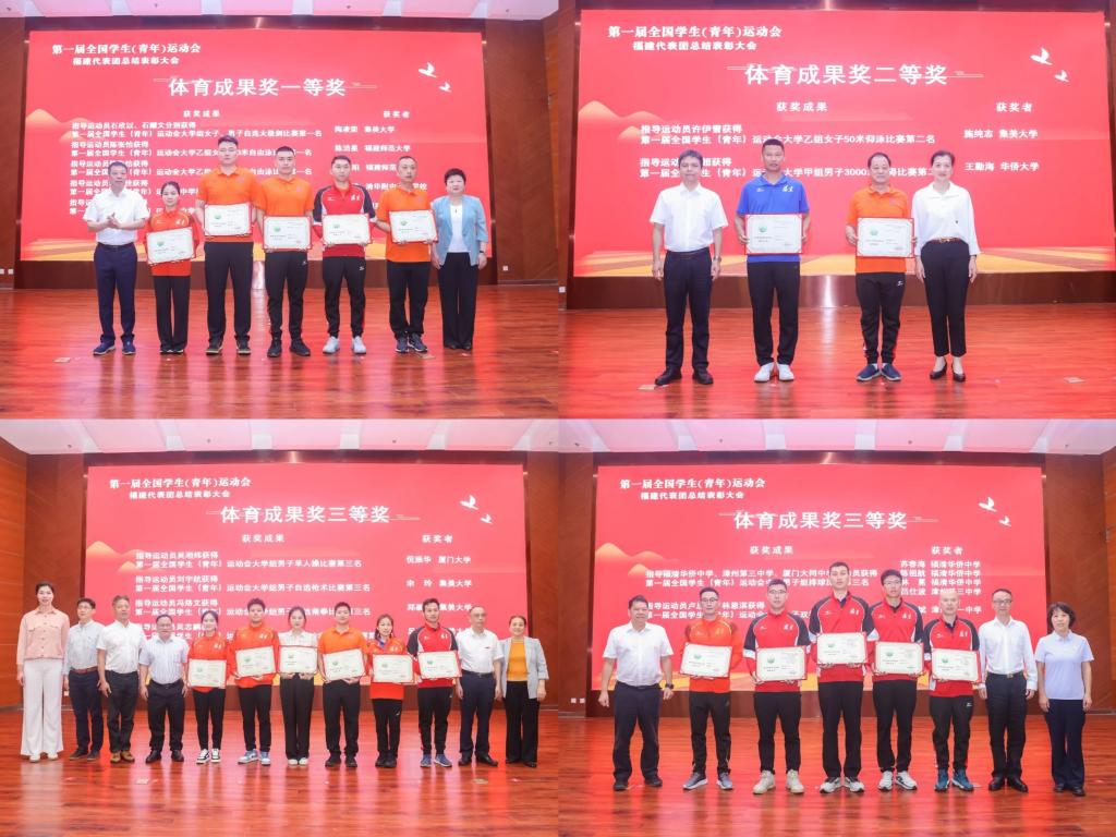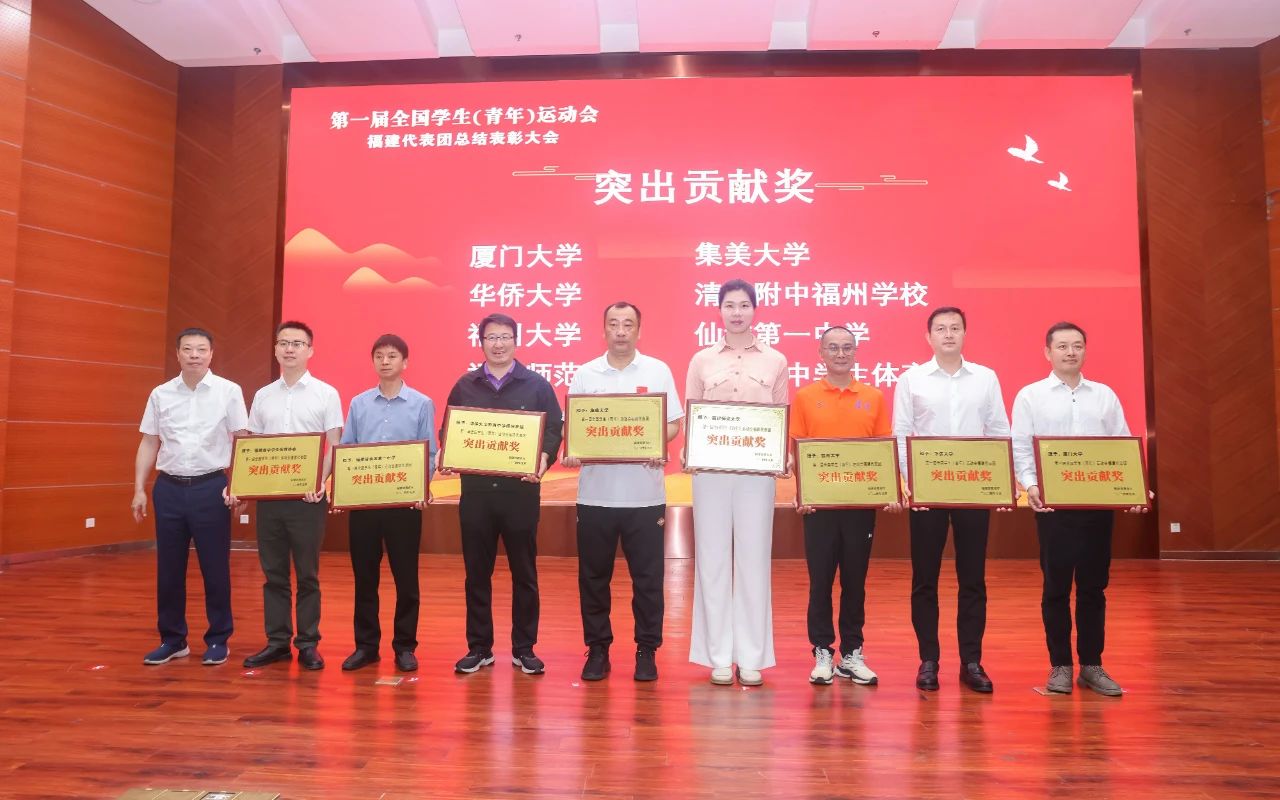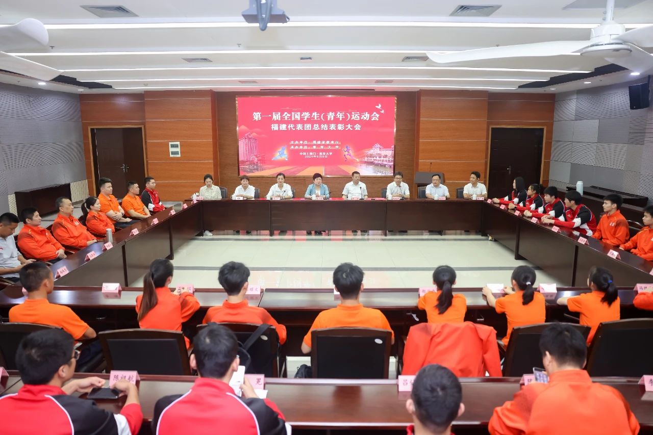 由教育部、国家体育总局、共青团中央联合主办的第一届全国学生(青年)运动会(以下简称“全国学青会”)于2023年11月5日至15日在广西壮族自治区举行。5月9日上午,第一届全国学青会福建代表团总结表彰大会在集美大学召开,表彰在本届学青会上表现突出的先进集体和优秀个人,激励广大师生不断开创新时代学校体育工作新局面。福建省教育厅体卫艺语处处长苏贻堆主持会议。