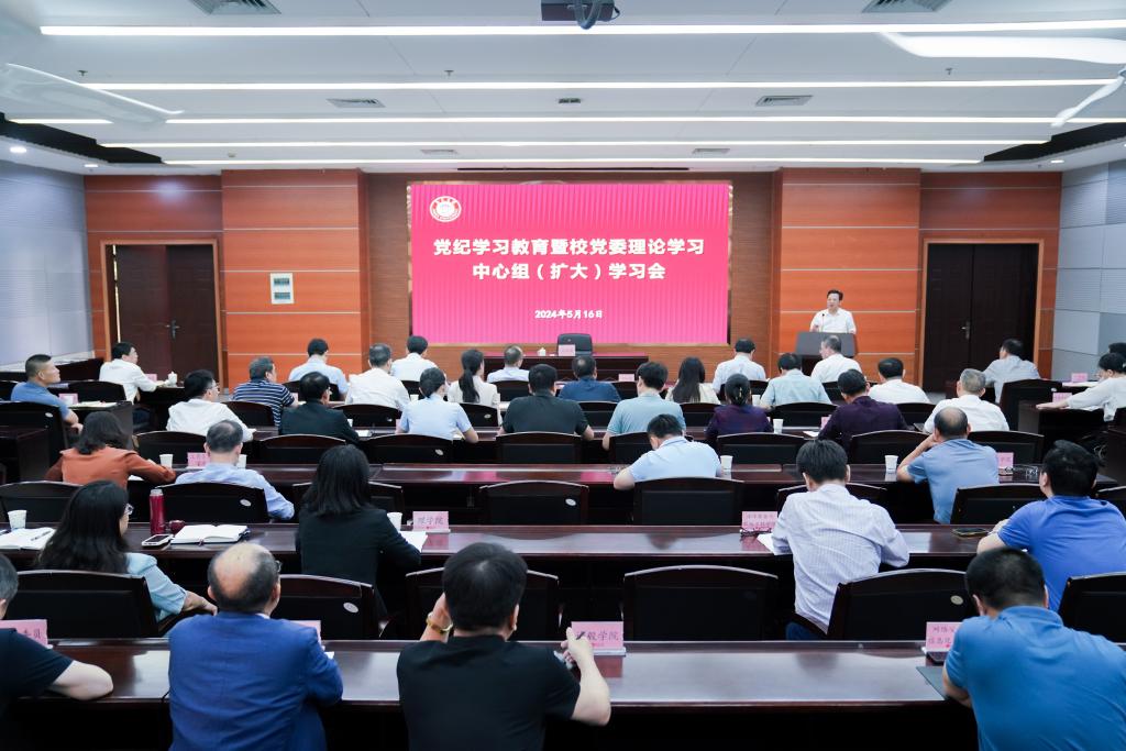 5月16日下午,我校召开党纪学习教育暨校党委理论学习中心组(扩大)学习会,进行第二次集中专题学习。校党委理论学习中心组成员,校纪委委员,机关部处和教辅机构主要负责人,各学院党委书记、院长(含主持工作副院长)参会。会议由校党委书记沈灿煌主持。