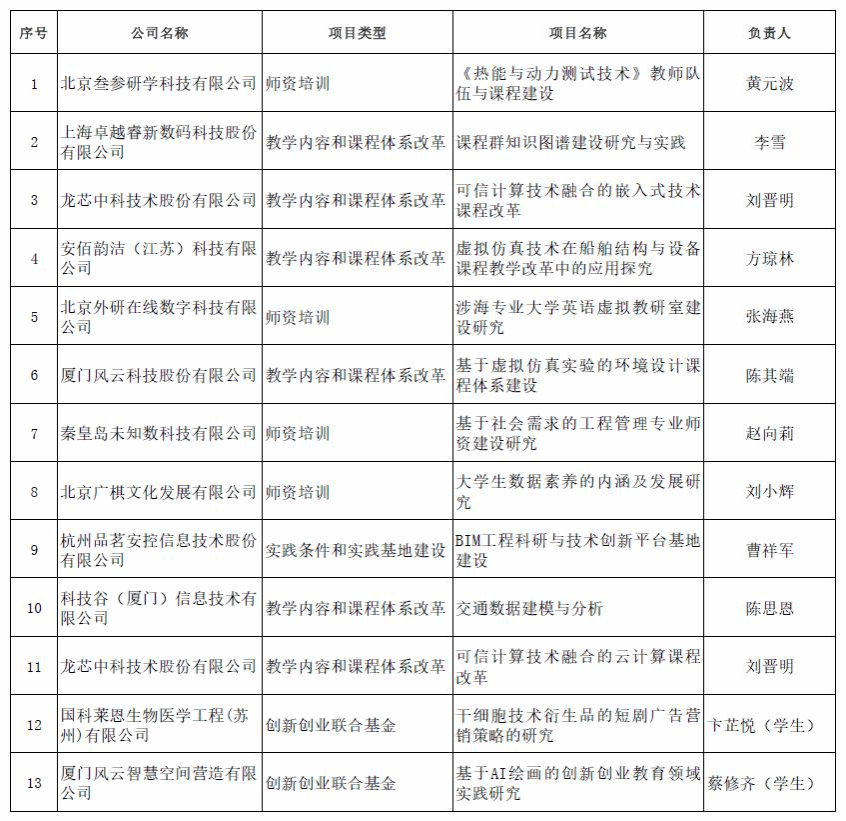 教育部产学合作协同育人项目由教育部高教司组织,是深化产教融合、校企合作,以产业和技术发展的最新需求推动高校人才培养改革的重大举措。该项目主要包括“新工科、新医科、新农科、新文科建设”“教学内容和课程体系改革”“创新创业教育改革”“师资培训”“实践条件和实践基地建设”“创新创业联合基金”等六类。