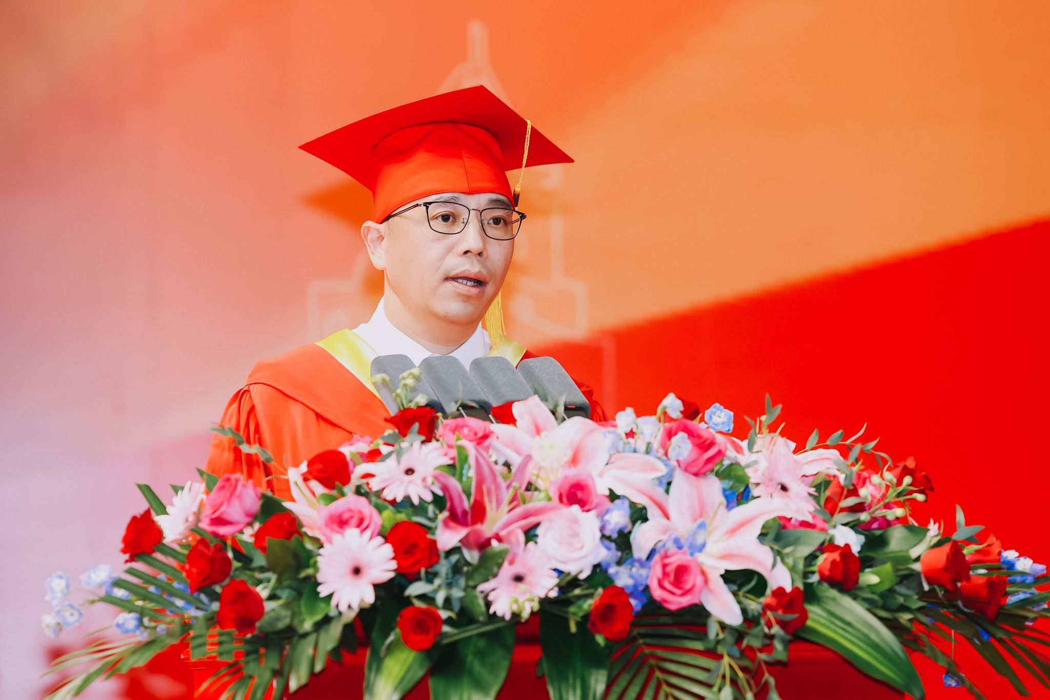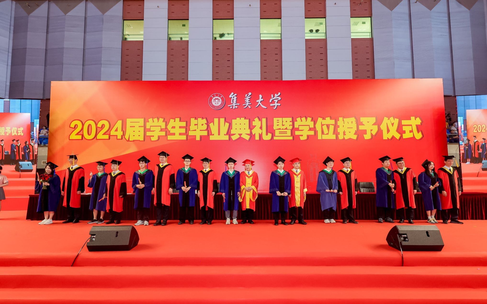 校党委副书记、校长谢潮添以“做更好的自己”为题深情寄语毕业生。他回顾了2024届全体毕业生“与集大共成长”留下的专属“集大记忆”,勉励全体毕业生:一要以“诚”为本,做真实的自己。增强自我认知,发掘和提升潜能,在真实世界中交互和成长,成就精彩人生。二要以“毅”立身,做勇敢的自己。不惧险、不畏难,坚定信心,扛起重担,用愿担当的自觉、敢担当的动力、善担当的本领,迎接人生挑战,为自己、为家国争取荣光。三要追求卓越,做更好的自己。要确立目标、认准方向,坚定信念、奋力拼搏,坚韧不拔、持之以恒,勇闯每一个艰难险滩,迎接每一次惊涛骇浪,不断追求卓越,不断做更好的自己。
