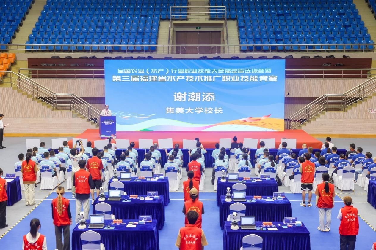 8月14日-15日,全国农业(水产)行业职业技能大赛福建省选拔赛暨第三届福建省水产技术推广职业技能竞赛在我校举行。本次赛事由省海洋与渔业局、省人力资源和社会保障厅、省总工会主办,省水产技术推广总站承办、我校协办。校长谢潮添,全国水产技术推广总站、省海洋与渔业局、省总工会劳动部等相关领导出席活动,竞赛吸引全省各地的11支代表队、33位水产技术推广能手参加。