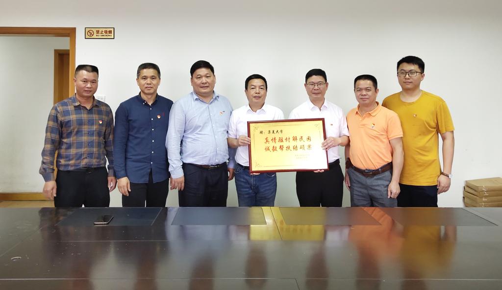 4月28日,我校精准扶贫帮扶镇诏安县官陂镇镇长沈初文、四级主任科员王建光、扶贫办主任汤亮和官北村主任张新能等专程将一块“真情驻村解民困,诚毅帮扶结硕果”牌匾送到学校,以表达对我校助力脱贫攻坚事业取得成效的谢意。组织部副部长陈洪林代表学校接受了牌匾。工商管理学院党委书记陈福昌,组织部副部长陈洪林、驻村第一书记罗桥荣同官陂镇领导一行还进行了座谈交流。