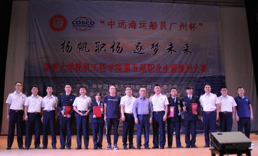 5月8日晚上,轮机工程学院在古龙大礼堂隆重举办第五届职业生涯规划大赛决赛。本次大赛邀请到中远海运船员管理有限公司广州分公司总经理林国旋、集美大学党委学工部副部长廖汝祥、轮机工程学院廖建彬副教授担任评委。中远海运船员管理有限公司广州分公司副总经理黄福遵、轮机工程学院党委书记郁军态、党委副书记赖龙荣及全体政工干部出席了决赛。