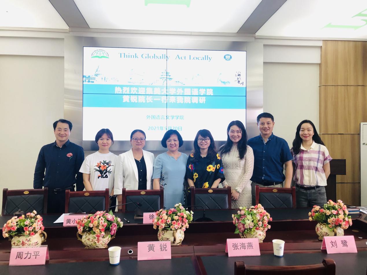 为推进师范教育学科建设,提升一流学科建设和积极做好师范认证,外国语学院院长黄锐、集美大学领军人才张海燕等一行3人在重庆参加学术会议期间,利用空余时间于5月20日前往重庆第二师范学院调研。