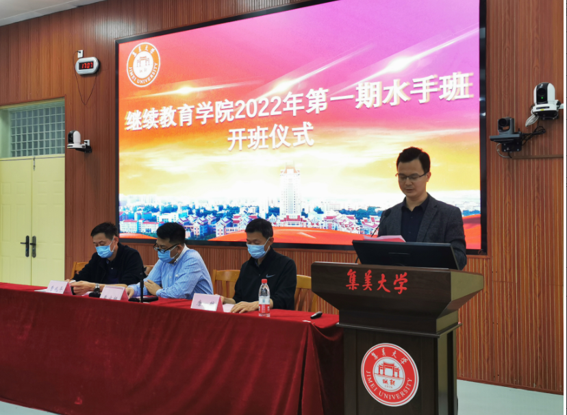 5月18日,集美大学举办2022年第一期水手培训班开班仪式。航海学院党委副书记曹兆平、副院长曹宝根、继续教育学院党委副书记李祥军、培训部主任唐一雄以及90余名学员出席开班式。