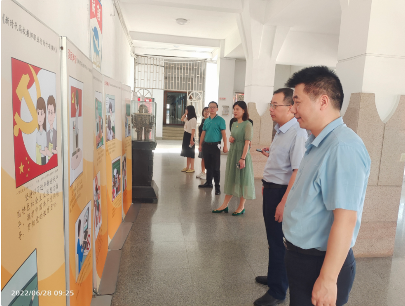 作品展以“坚持以习近平新时代中国特色社会主义思想为指导,拥护中国共产党的领导,贯彻党的教育方针”“忠于祖国忠于人民恪守宪法原则,遵守法律法规,依法履行教师职责”“带头践行社会主义核心价值观,弘扬真善美传递正能量”等十幅作品组成,以画明理,以画释规,着重明确“四有好老师”“四个引路人”“四个相统一”的要求。