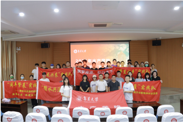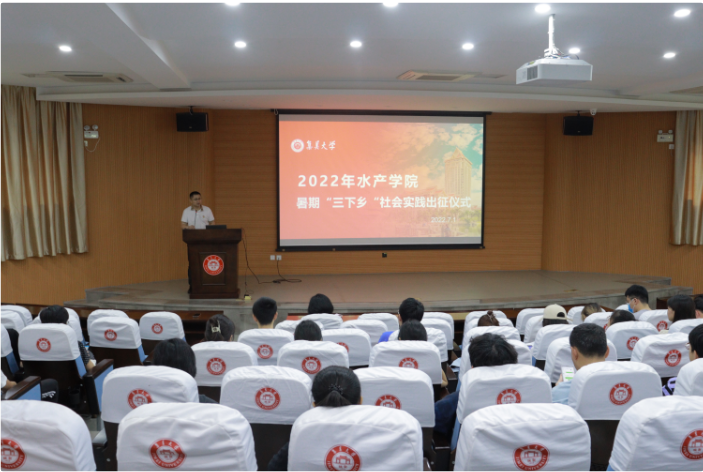7月1日下午,水产学院2022年暑期“三下乡”社会实践出征仪式在水新综一楼报告厅举行。学院党委副书记黄庆胜、团委书记以及各实践队指导老师、队员出席出征仪式。