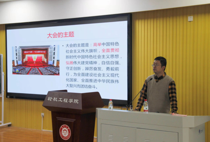 近日,轮机工程学院邀请马克思主义学院董立功副教授作“学习党的二十大精神”专题辅导报告。院党委书记郁军态主持,学院全体教职工和部分学生党员参加。
