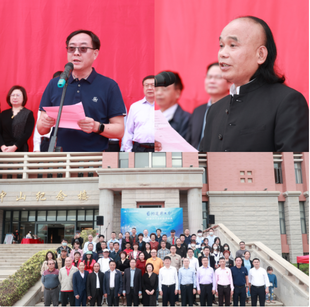 厦门市海洋发展局总工程师林怀远、厦门市文学艺术界联合会书记陈影、集美大学党委常委、党委宣传部部长潘登、厦门市海洋与水产学会会长柯才焕、集美大学科研处处长张玉苍、水产学院书记黄海宏、美术与设计学院书记陈延童、外国语学院书记王文辉、东方鱼骨画馆馆长林翰冰先生及厦门民间文艺家协会、厦门市工艺美术协会、厦门海洋文化与科普专委会、集美区文学艺术界联合会、集美大学相关单位领导和嘉宾出席本次活动并共同为此次艺术展剪彩开幕,开幕式由水产学院党委副书记黄庆胜主持。