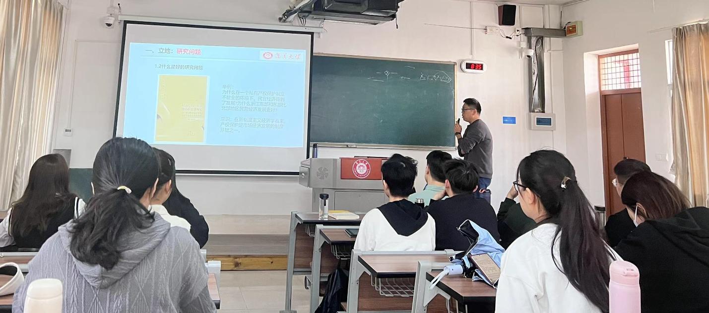 蔡聪裕结合专业特色及自身经验,从提出研究问题、查找经典文献、搭建写作框架、选择投稿刊物等方面进行分享,对学生提出的问题答疑解惑。他勉励同学们要多阅读、勤思考、善交流。