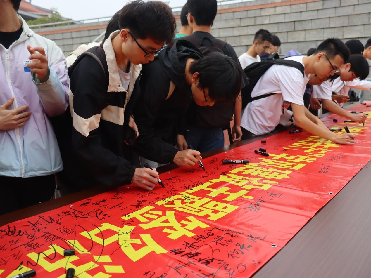 张鸿指出,良好的学风作为潜移默化的精神力量,对于学生的成长成才起着重要作用,同学们要积极行动起来,以创建优良学风为己任,养成良好学习习惯,争创优异学习成绩。辅导员以“拒绝懒惰 勇毅前行”为主题进行发言,鼓励同学们怀揣梦想,制定切实可行的奋斗目标,勇毅前行,凝聚磅礴进取的奋斗力量。同学们在工作人员的引导下,在以“学思践悟二十大 优良学风我先行”为主题的宣传横幅上郑重签名,响应学院学风建设,践行优良学风。