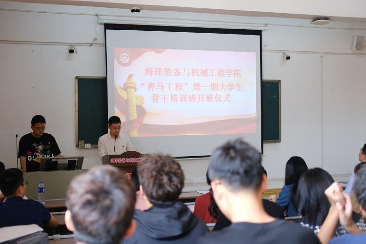 4月28日,海洋装备与机械工程学院举行第一期“青马工程”大学生骨干培训班开班仪式。学院党委副书记谢杰云、团委负责人、全体辅导员以及青马班学员参加仪式。