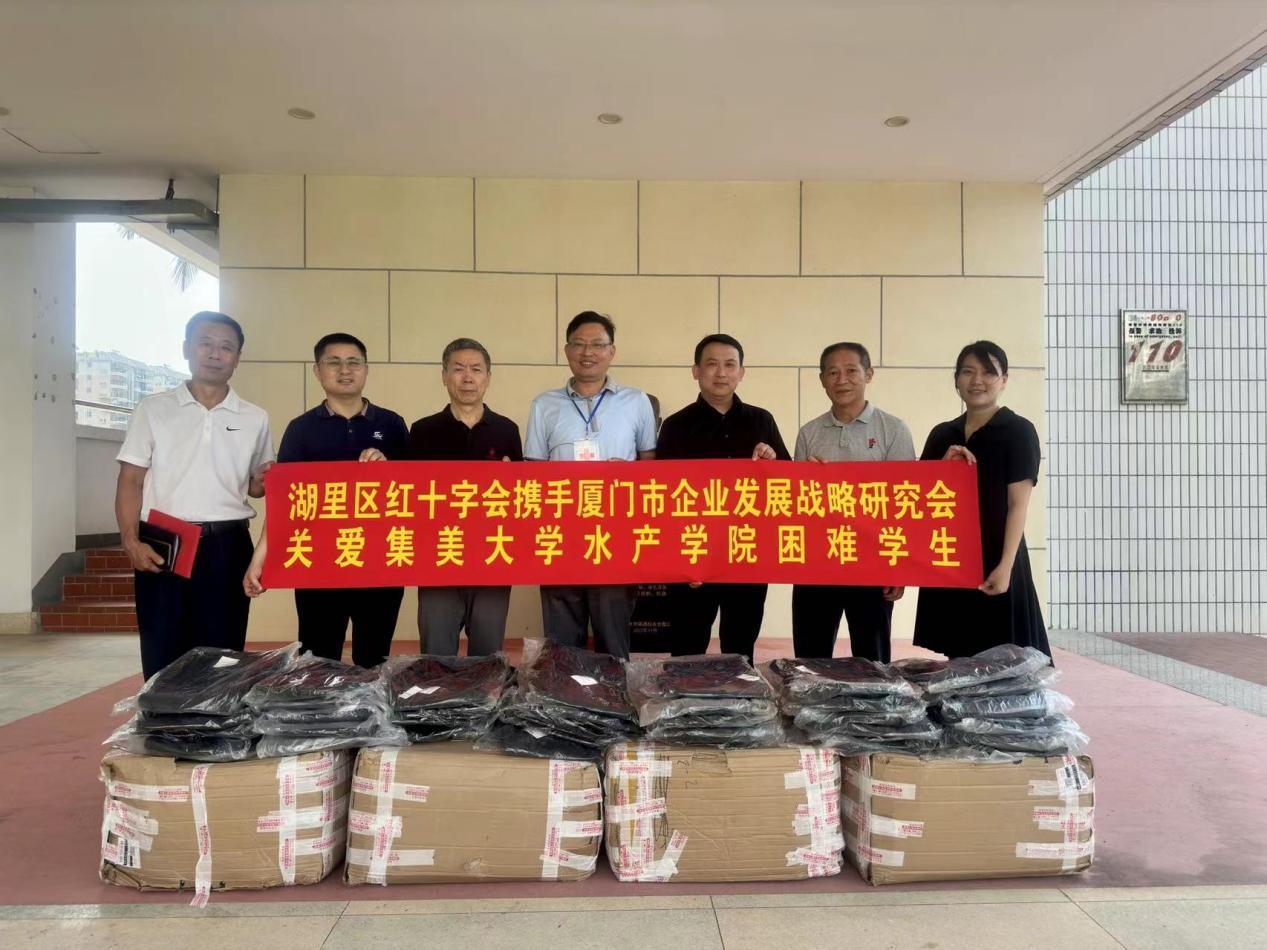 为支持教育事业,关爱困难学子,弘扬奉献社会、关爱弱势群体的大爱精神,湖里区红十字会携手厦门市企业发展战略研究会会员企业一一福建瑞力恒环保技术有限公司向水产学院困难学生捐赠书包交接仪式在水产学院吴迪楼举行。湖里区红十字会常务副会长蔡卫国、秘书长汪朝阳、中振同泰照明科技有限公司总经理张贵清、福建瑞力恒环保技术有限公司运营总监王振华、办公室主任白东升、水产学院党委副书记黄庆胜等领导参加捐赠仪式。