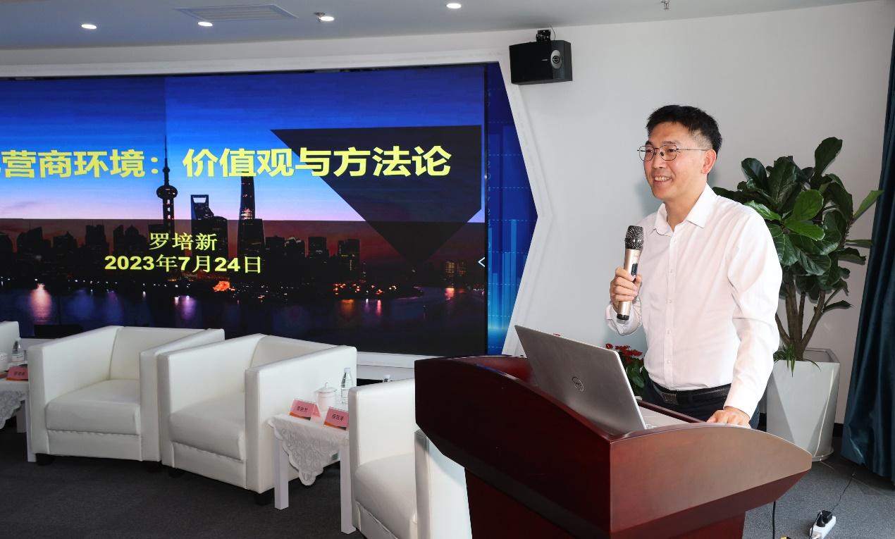 工商管理学院及营商环境研究中心特邀嘉宾上海市司法局党委委员、副局长罗培新教授发表了题为《优化法治化营商环境:价值观与方法论》的专题演讲。罗培新教授四度全程参与世行所有指标的最终磋商,当选2022年中国年度法治人物。罗培新教授以营商环境的核心要义法治为切入点,就法治化营商环境的底层逻辑“价值判断”和优化营商环境的现实路径进行了探讨,引发了热烈反响。营商环境研究中心程国琴副教授围绕强化府院联动机制优化法治营商环境的难点和痛点问题畅谈了研究心得。
