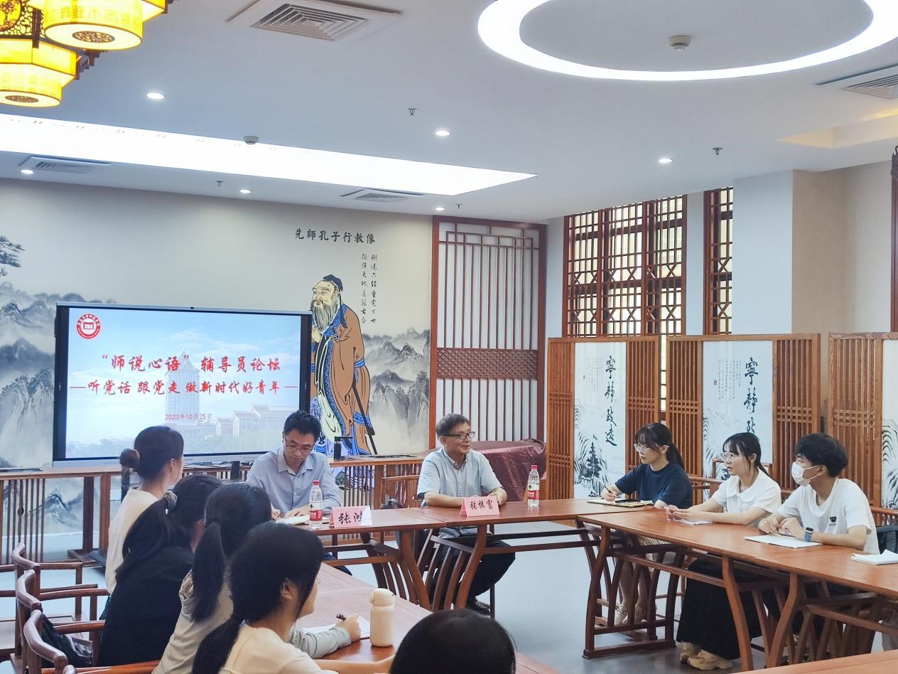 10月25日下午,师范学院于吕振万328会议室举办“师说心语”辅导员论坛,校关工委副主任张振富应邀主讲,院党委副书记张鸿、党委组织员、辅导员、班主任和学生党员代表参加。
