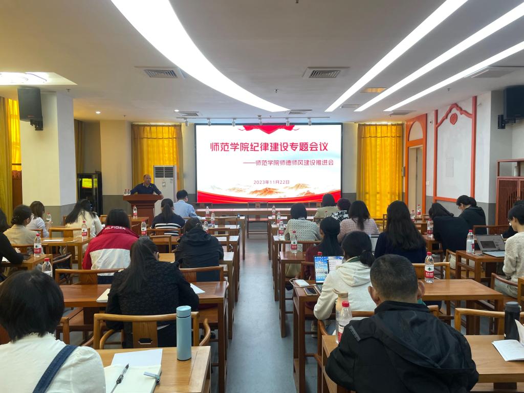 11月22日下午,师范学院在吕振万308会议室召开纪律建设专题会议暨师德师风建设推进会,院党委书记田建和主持,全体教职工参加。