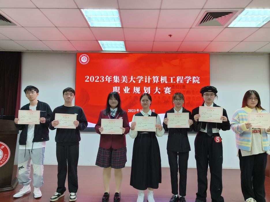 决赛现场,7位参赛选手经过层层选拔脱颖而出,他们结合自己的兴趣、特长和市场需求,通过PPT、视频等多种形式,向评委和观众展示了自己的职业规划。四位评委依次对各位参赛选手的表现及规划做出点评指导。经激烈角逐,最终陈若妍荣获一等奖,李舒雅、阮家宏荣获二等奖,樊祥熙、杨雯惠、郑宇涵、董苹瑶荣获三等奖。