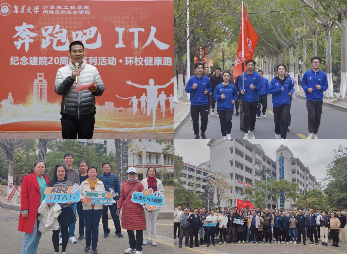 为迎接2024年学院建院二十周年,12月20日下午,计算机工程学院举办环校健康跑活动,学院全体教师、校友代表及学生代表共同参与本次活动。