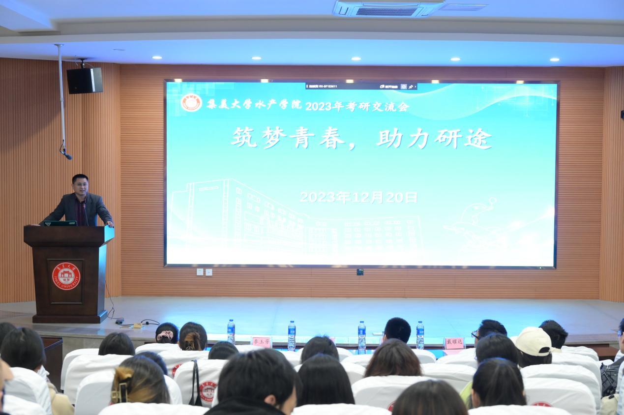 12月20日,水产学院在综合楼一楼报告厅开展“筑梦青春 助力研途”考研交流会,院党委副书记黄庆胜、聚创考研考试研究院院长廖志高、辅导员及2021级、2022级和2023级本科生学生代表参加。