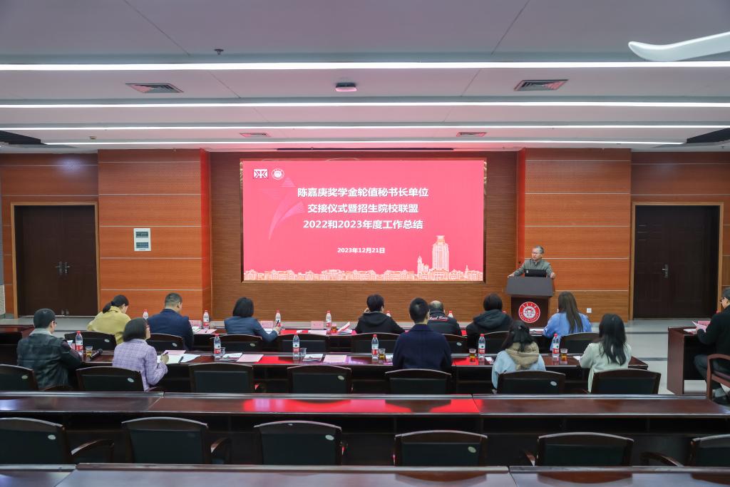 12月21日,陈嘉庚奖学金招生院校联盟轮值秘书长单位交接仪式暨2022和2023年度工作总结大会在我校尚大楼108召开,陈嘉庚教育基金会副理事长张志方、秘书长陈励雄和联盟各成员单位相关领导老师出席会议,会议由学生工作部部长张挺主持。