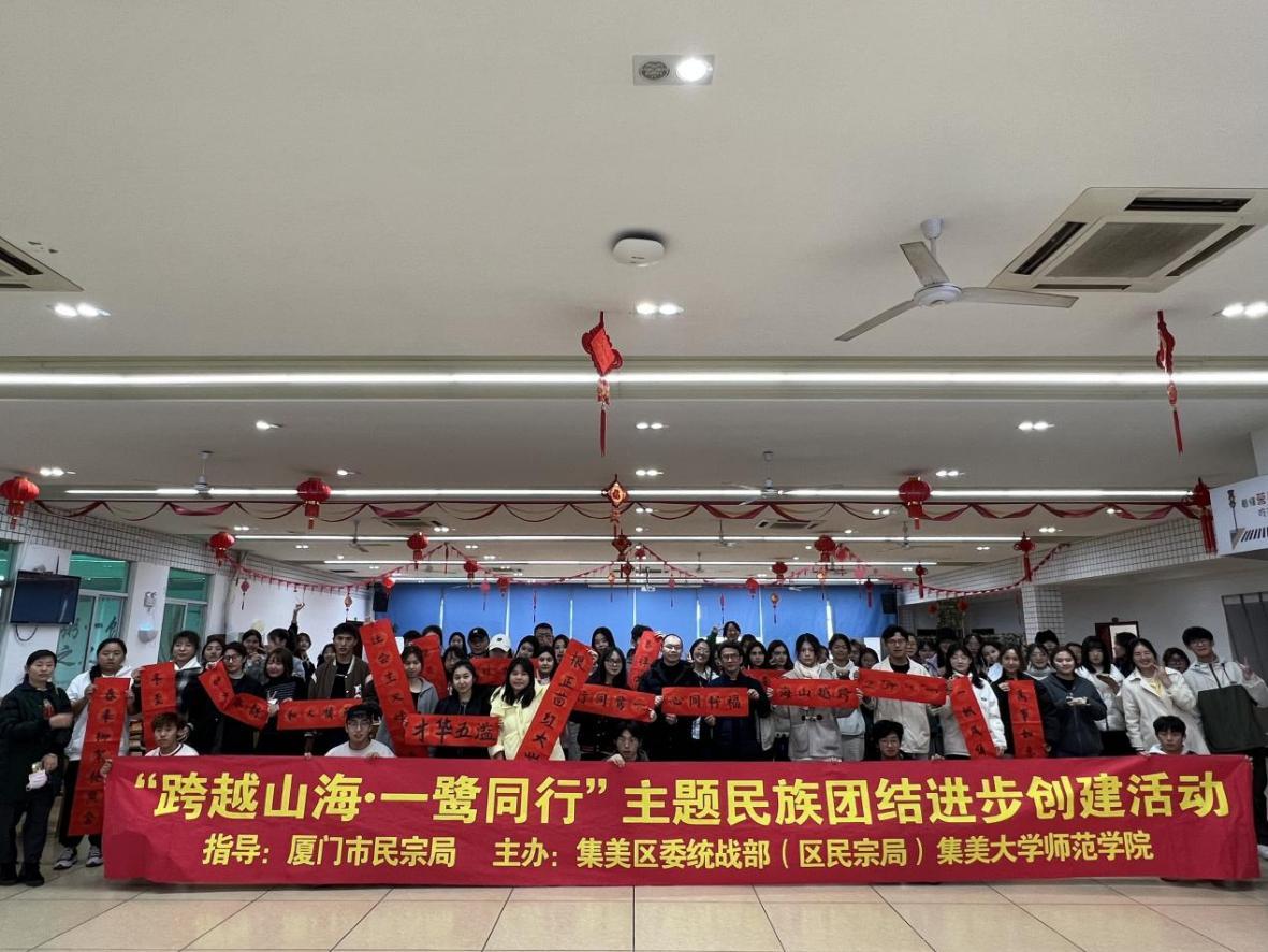 12月22日下午,师范学院组织少数民族预科班全体学生及福籽同心实践队成员,共同开展“跨越山海·一鹭同行”主题民族团结进步创建活动。此次活动由厦门市民宗局指导,集美区委统战部(区民宗局)和师范学院共同举办。厦门市民宗局民族工作处处长陈彬煌、厦门市民宗局办公室林镇凯、师范学院党委副书记张鸿和相关师生共同参加了活动。